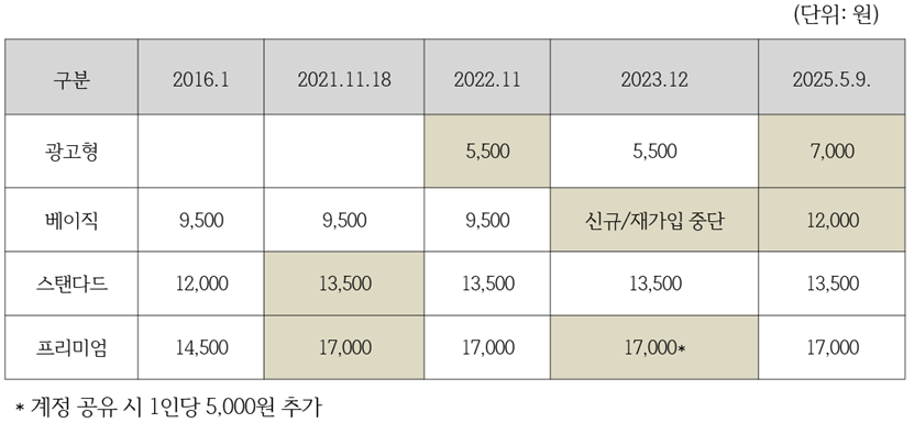구독모델로 시작한 넷플릭스는 구독자 성장의 정체기에 접어들면서 수익성 강화를 위해 비즈니스 모델을 다각화하고 있다. 가장 큰 변화는 넷플릭스가 자신의 서비스의 장점으로 광고를 보지 않아도 된다고 강조했고, 광고 모델을 도입하지 않겠다고 밝혔는데 ‘광고형 요금제(AVOD)’의 도입했고, 아이디를 공유하라며 권장했던 ‘계정 공유’를 금지했다. 넷플릭스는 2022년 11월 광고형 요금제를 월 5,500원에 출시하여 가격 민감도가 높은 이용자층을 흡수했고, 2023년 11월부터는 계정 공유 유료화를 단행하여 가입자당 평균 매출(ARPU)을 높이는 전략을 취했다.