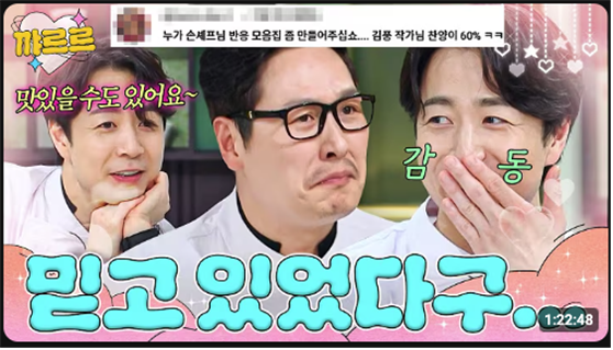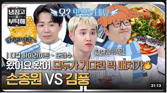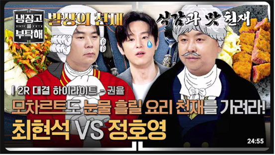 그 외에도 최현석의 생각을 꿰뚫어본 듯 그의 레시피를 줄줄이 예견하는 윤남노, <흑백요리사>에서는 우승을 도왔으나 <냉부해>에서는 여러 사람에게 패배만 안겨주는 권성준의 저주받은 프라이팬(일명 ‘실비아’), ‘얼렁뚱땅 만든 요리로도 전문 셰프들을 이기는 김풍이 두렵다’는 뜻의 ‘공풍증(공포증+김풍)’을 앓는 셰프들 등… <냉부해>는 시청자에게 학습시킨 셰프의 캐릭터성과 그들의 관계로부터 자연스레 삐져나오는 에너지들을 차츰 ‘서사화’하고 있으며, 그 작업은 유튜브를 주 무대로 한 2차 창작물로 게시해 반복 시청 효과를 톡톡하게 보고 있다.